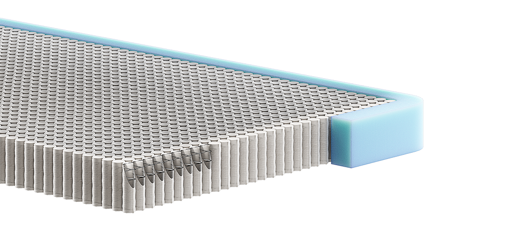 В данной модели в качестве несущей конструкции используется независимый блок вертикальных пружин цилиндрической формы. Каждая пружина находится в прочном чехле из нетканого материала, который удерживает пружину на своем месте и изолирует ее от соседних пружин.